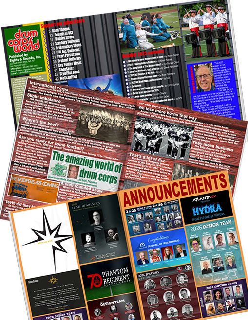 We encourage readers to patronize our sponsors and advertisers, without whom Drum Corps World would not be possible. Contact us below to become a sponsor / advertiser in Drum Corps World, the most widely read publication on the marching arts since 1971.